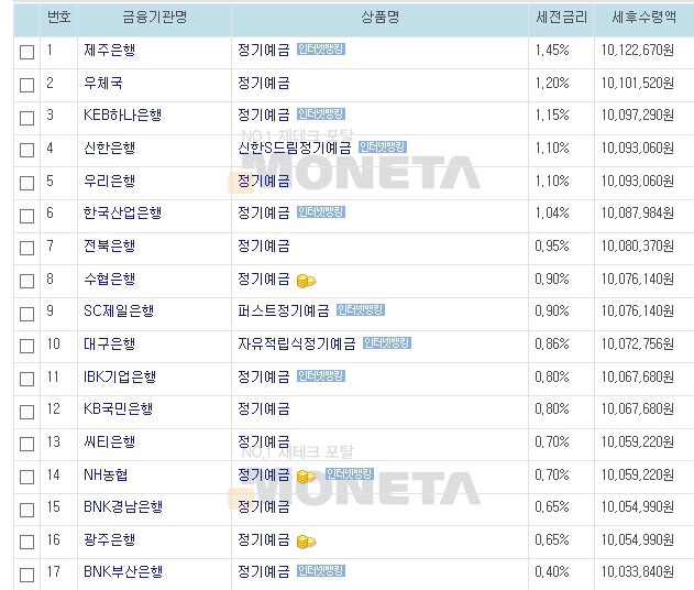 정기예금 금리비교 최근 이율